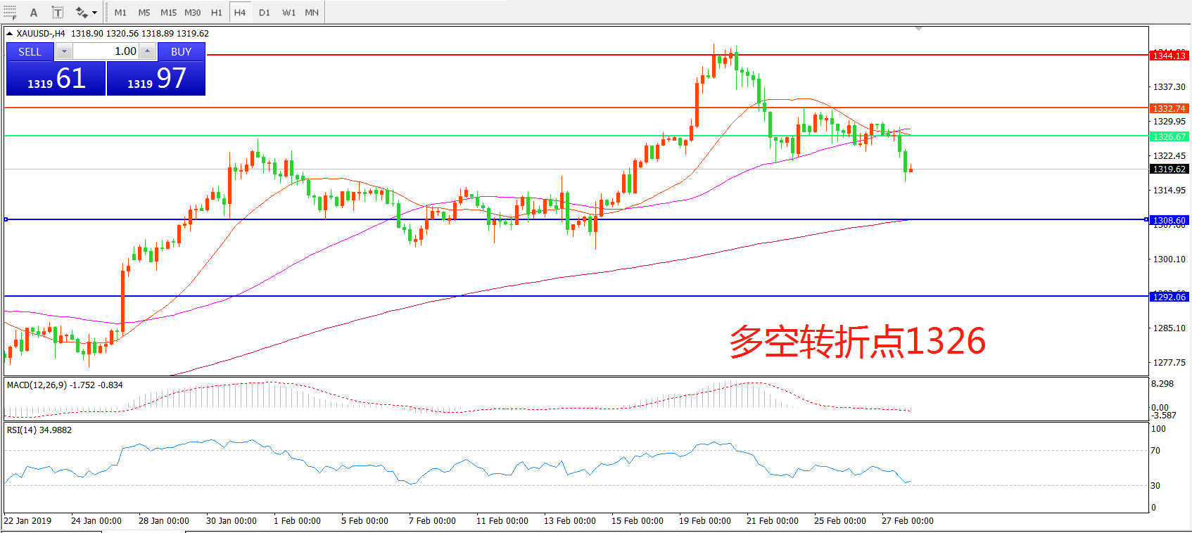交易策略:在1326.00之下看跌,目标1308.00   1292.00