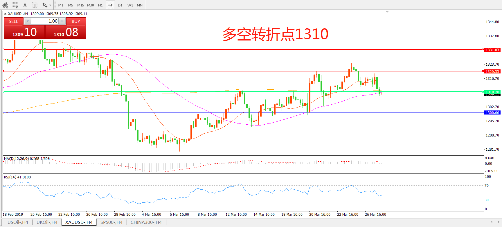 现货黄金周三(3月27日)先涨后跌,美市盘中最低下探至1308.60美元/盎司,盘中跌穿1310关口。此前疯狂飙升的钯金开启暴跌模式,日内跌幅逾6%或近100美元,最低触及1438.20美元/盎司,创去年八月以来最大盘中跌幅,对黄金形成拖累。但美债收益率曲线继续倒挂,全球经济放缓与脱欧依然是金价的重要支撑,中期思路依然看多。