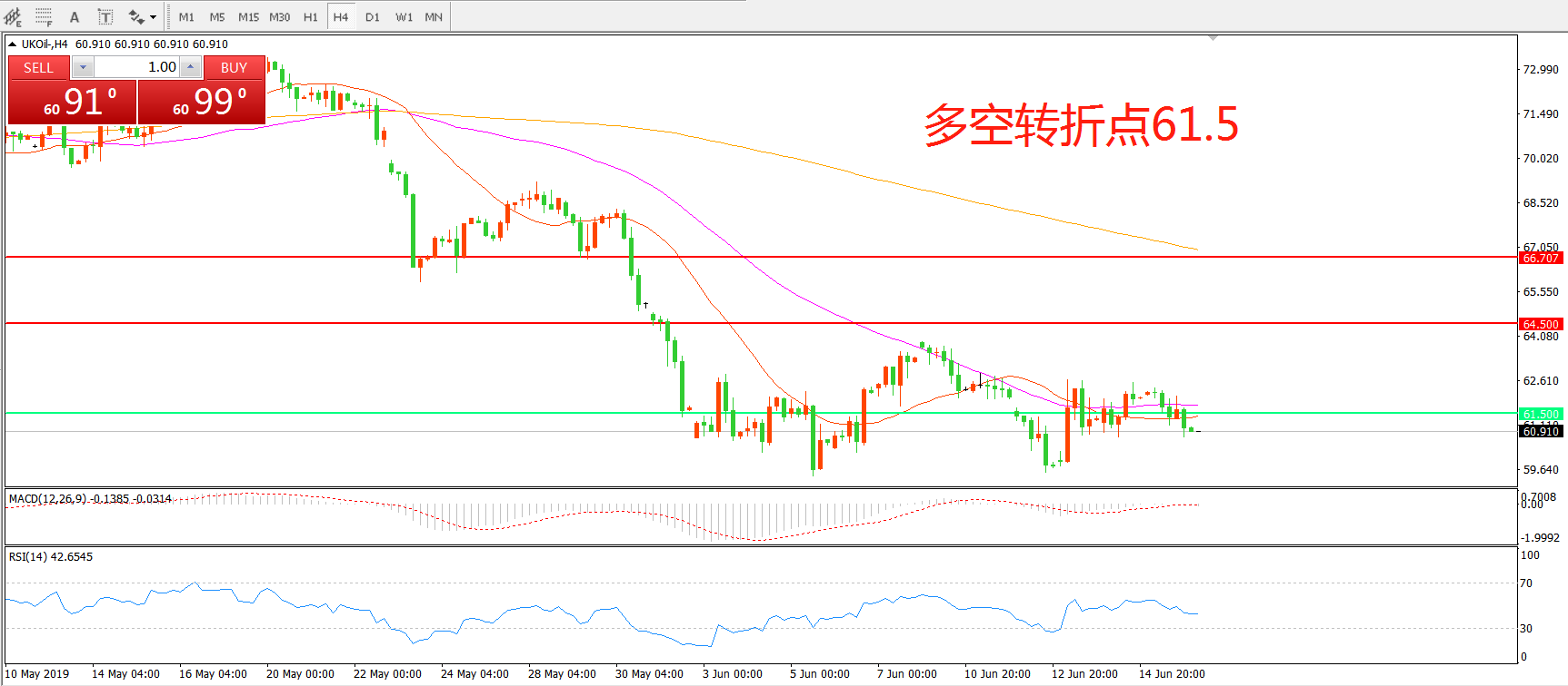 交易策略:在61.50之下看跌,目标57.50 53.00