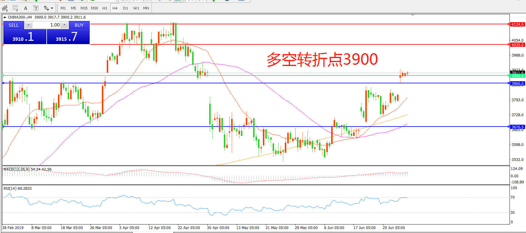 多空转折点:3900.00