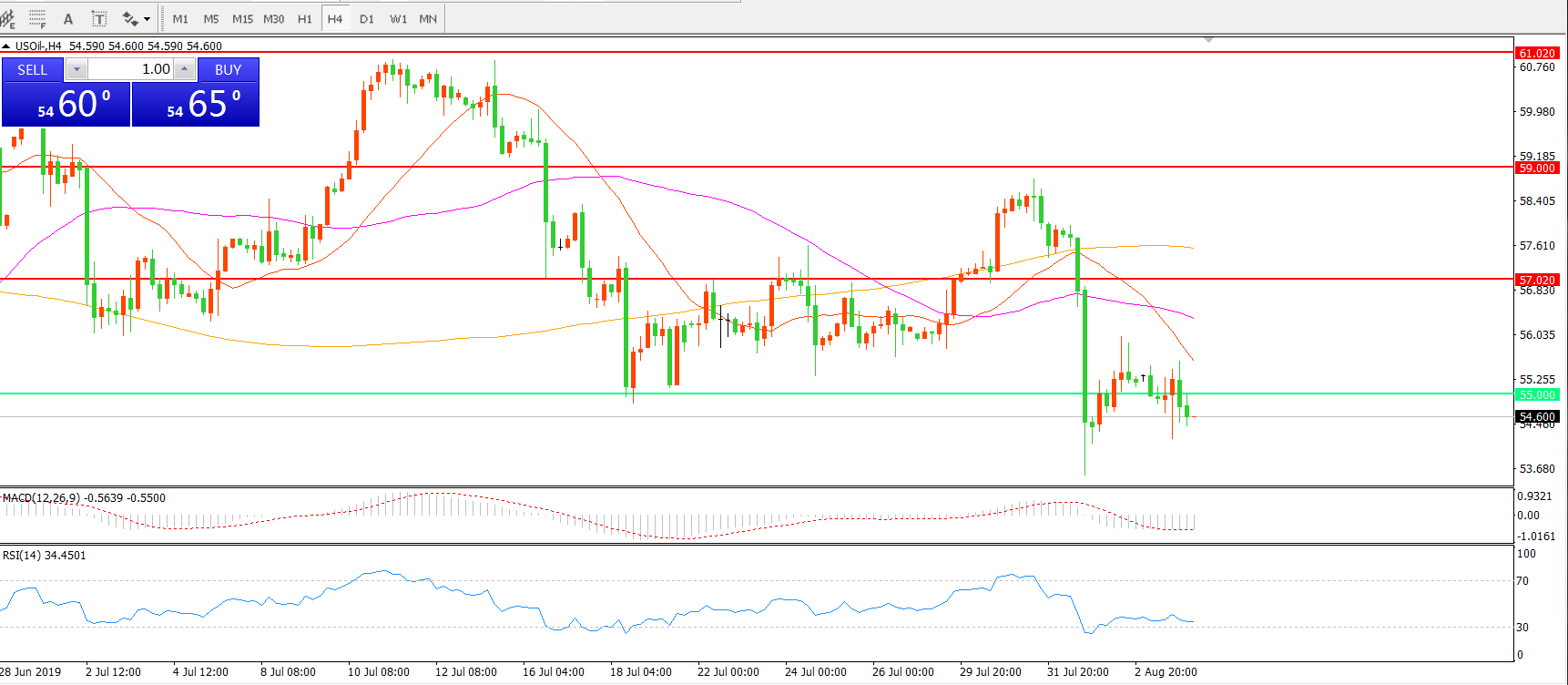 交易策略:在55.00之下看跌,目标51.50 49.50