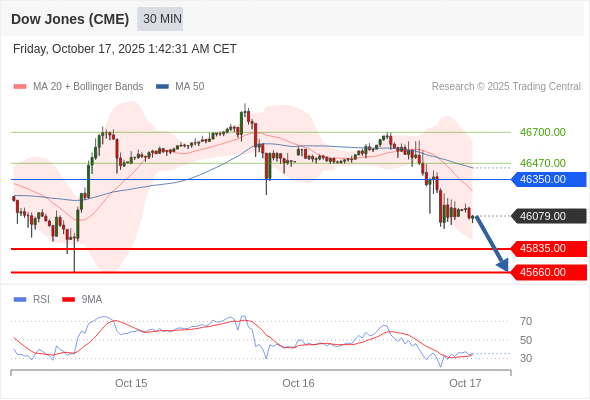 在 46350.00 之下,看跌,目标价位为 45835.00 ,然后为 45660.00 。