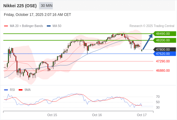 日经225股指期货 (OSE) 当日内: 超短线(当日内)支撑位在47620.00附近。