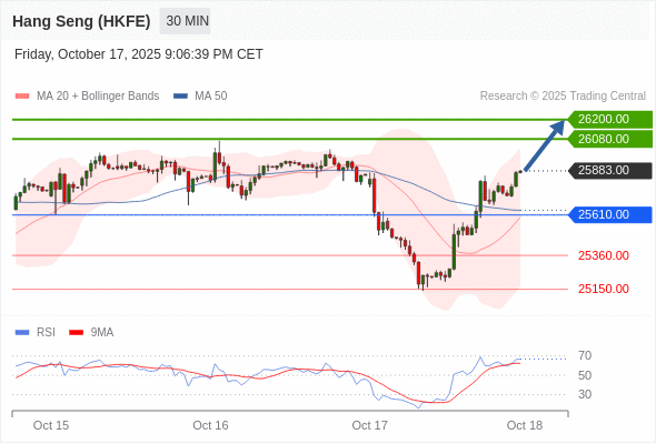 交易策略: 在 25610.00 之上,看涨,目标价位为 26080.00 ,然后为 26200.00 。