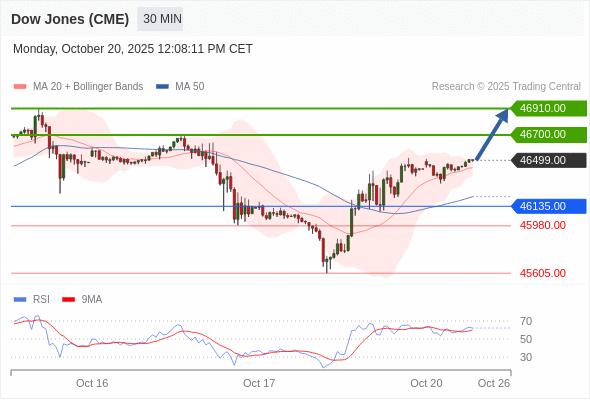 在 46135.00 之上,看涨,目标价位为 46700.00 ,然后为 46910.00 。