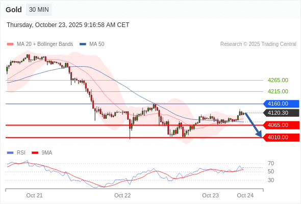 在 4160.00 之下,看跌,目标价位为 4065.00 ,然后为 4010.00 。