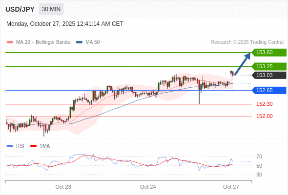 在 152.65 之上,看涨,目标价位为 153.25 ,然后为 153.60 。