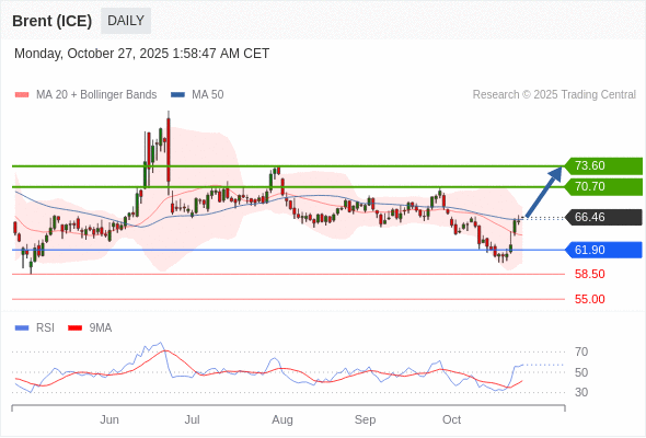 在 61.90 之上,看涨,目标价位为 70.70 ,然后为 73.60 。