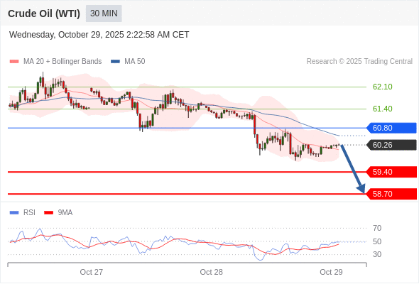 在 60.80 之下,看跌,目标价位为 59.40 ,然后为 58.70 。