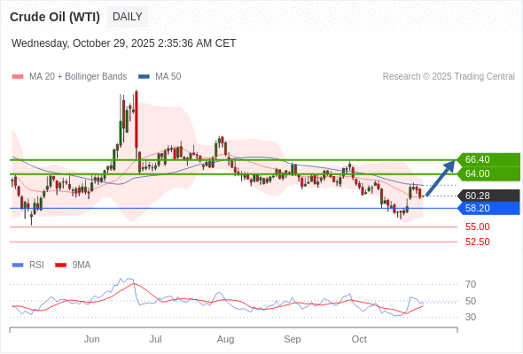 在 58.20 之上,看涨,目标价位为 64.00 ,然后为 66.40 。