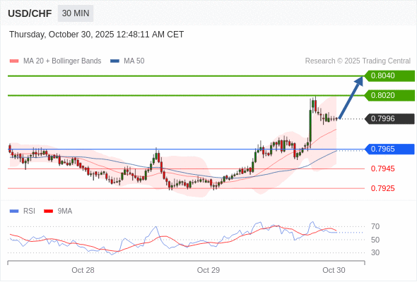 在 0.7965 之上,看涨,目标价位为 0.8020 ,然后为 0.8040 。