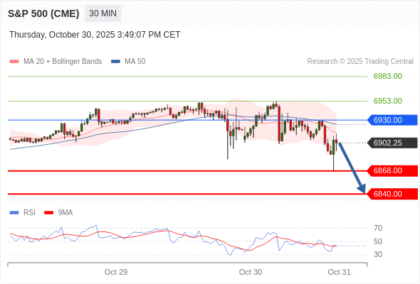 在 6930.00 之下,看跌,目标价位为 6868.00 ,然后为 6840.00 。