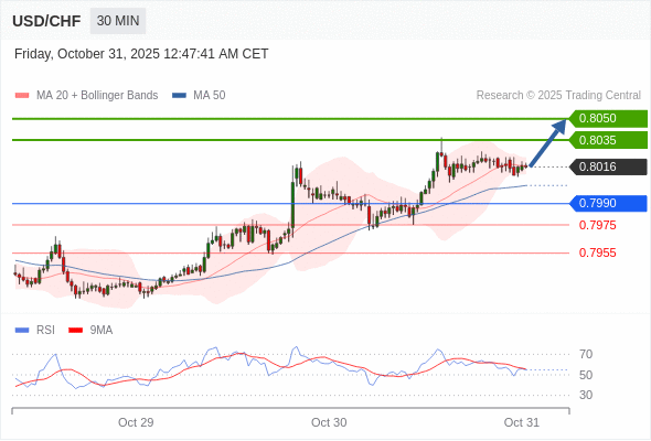 在 0.7990 之上,看涨,目标价位为 0.8035 ,然后为 0.8050 。