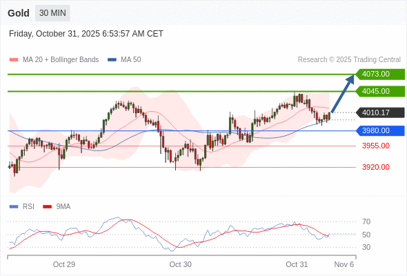 在 3980.00 之上,看涨,目标价位为 4045.00 ,然后为 4073.00 。