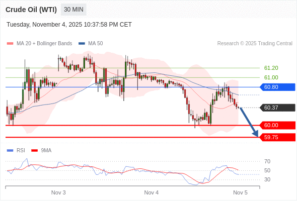 在 60.80 之下,看跌,目标价位为 60.00 ,然后为 59.75 。