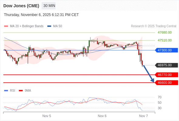 在 47300.00 之下,看跌,目标价位为 46770.00 ,然后为 46600.00 。