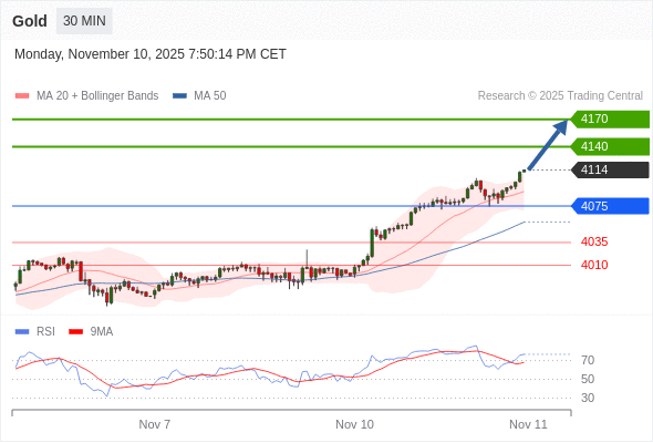 在 4075 之上,看涨,目标价位为 4140 ,然后为 4170 。