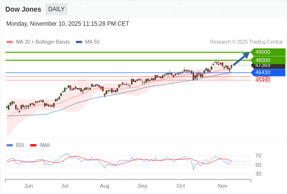 在 46430 之上,看涨,目标价位为 48000 ,然后为 49000 。