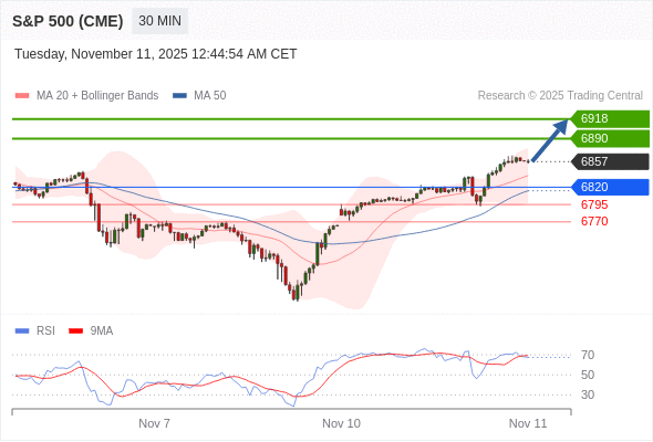 在 6820 之上,看涨,目标价位为 6890 ,然后为 6918 。