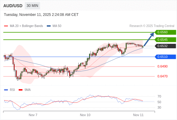 在 0.6510 之上,看涨,目标价位为 0.6545 ,然后为 0.6560 。