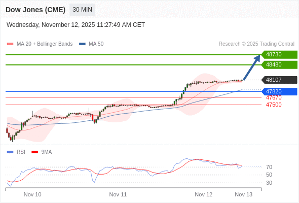 在 47820 之上,看涨,目标价位为 48480 ,然后为 48730 。