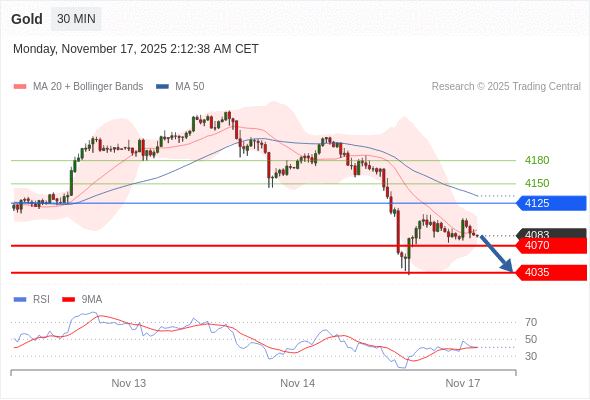 在 4125 之下,看跌,目标价位为 4070 ,然后为 4035 。