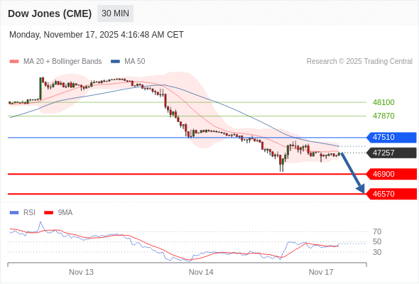 在 47510 之下,看跌,目标价位为 46900 ,然后为 46570 。