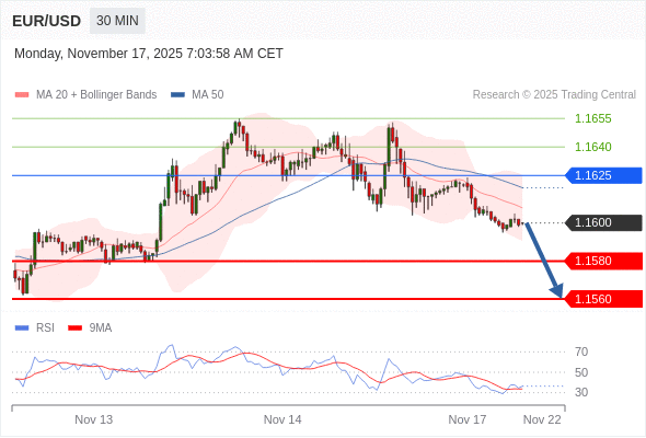 在 1.1625 之下,看跌,目标价位为 1.1580 ,然后为 1.1560 。