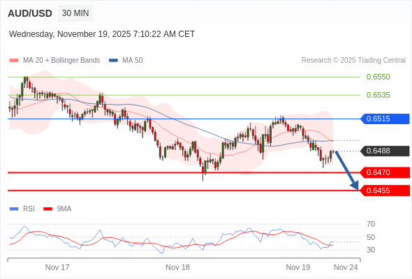 在 0.6515 之下,看跌,目标价位为 0.6470 ,然后为 0.6455 。