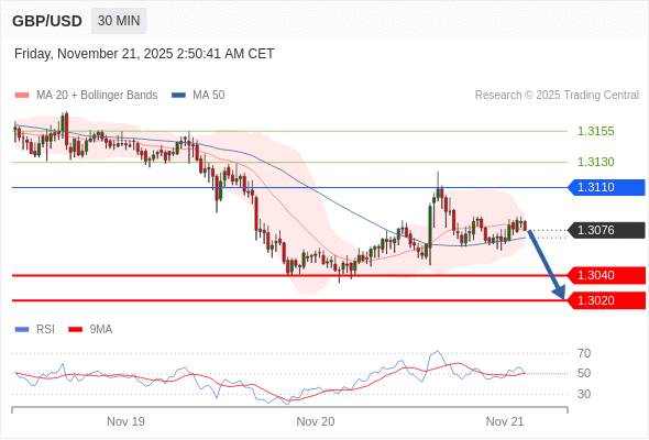 在 1.3110 之下,看跌,目标价位为 1.3040 ,然后为 1.3020 。