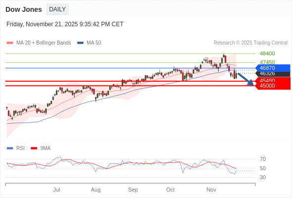 在 46870 之下,看跌,目标价位为 45490 ,然后为 45000 。