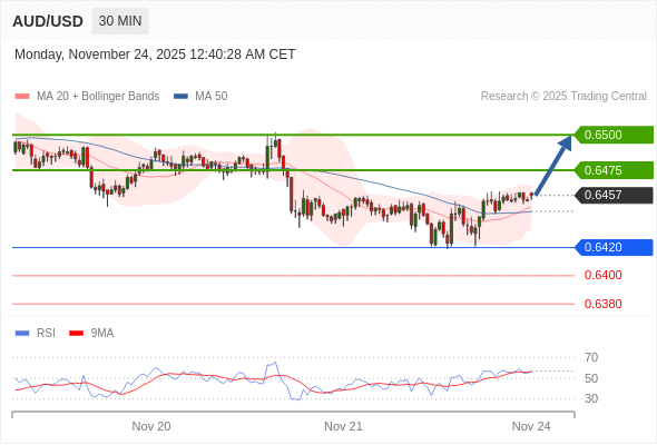 在 0.6420 之上,看涨,目标价位为 0.6475 ,然后为 0.6500 。