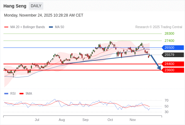 交易策略: 在 26500 之下,看跌,目标价位为 24400 ,然后为 23600 。