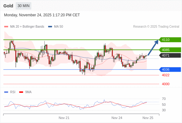 在 4036 之上,看涨,目标价位为 4085 ,然后为 4110 。