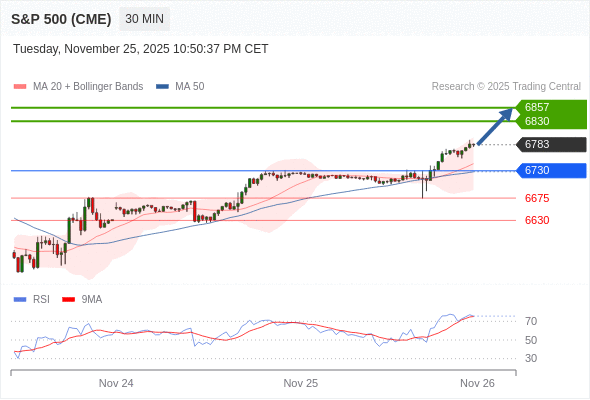 在 6730 之上,看涨,目标价位为 6830 ,然后为 6857 。