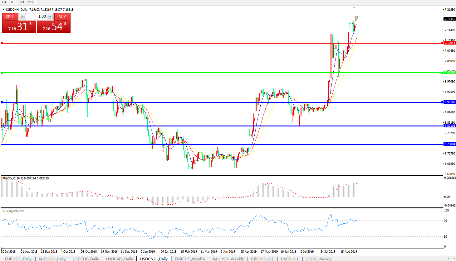 交易策略: 在7.0000之上,看涨,目标价位为7.1000,然后为7.2000。