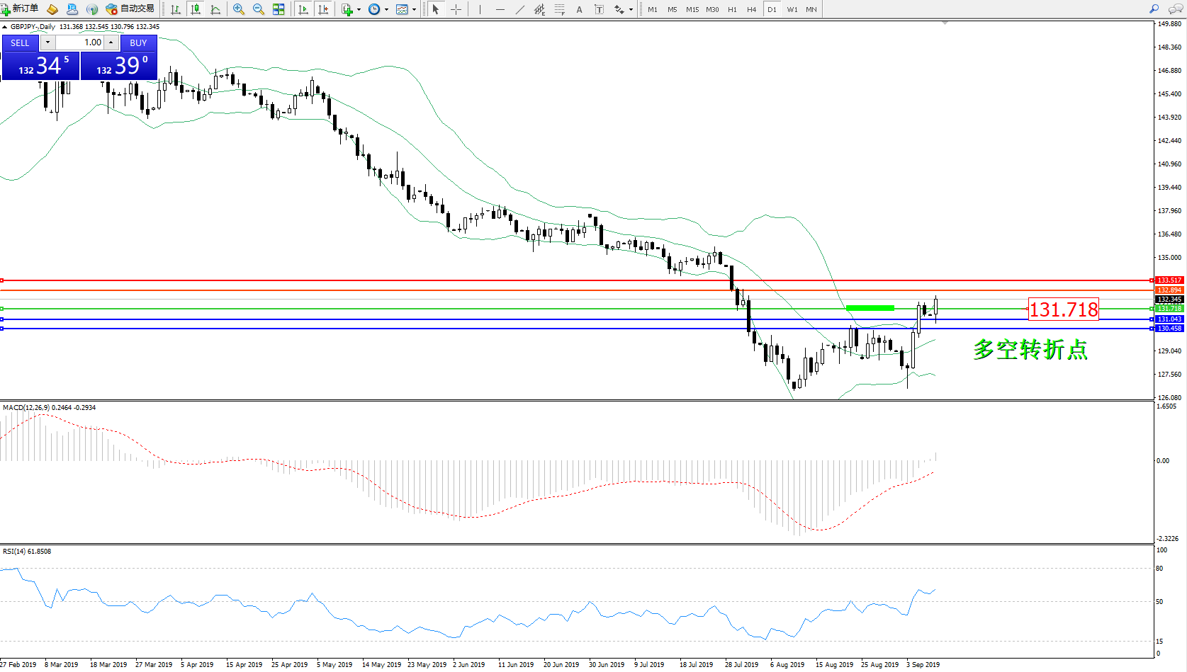 交易策略:131.718上方看涨,目标132.894133.517