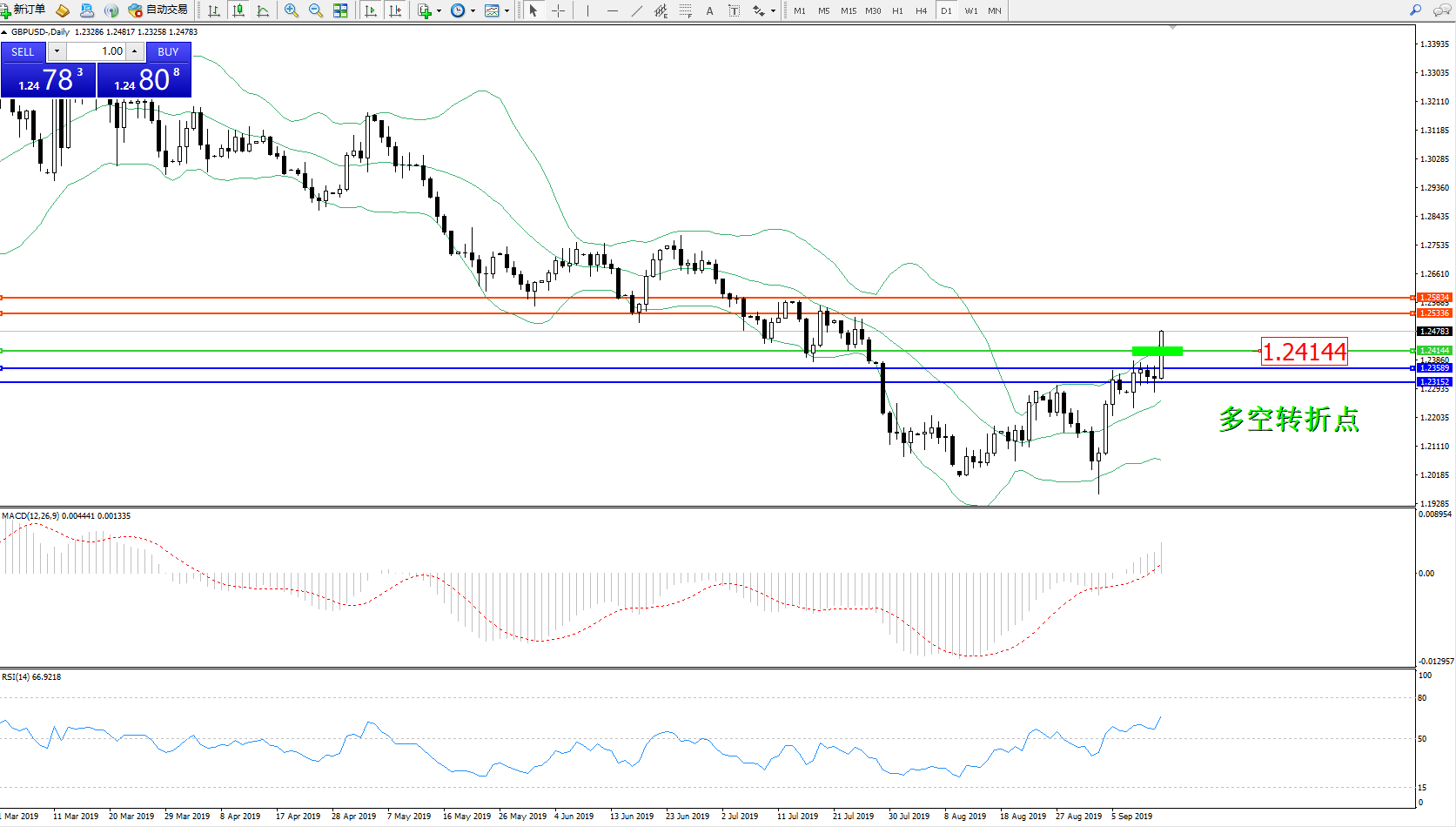 交易策略:1.24144上方看涨,目标1.25336、1.25834
