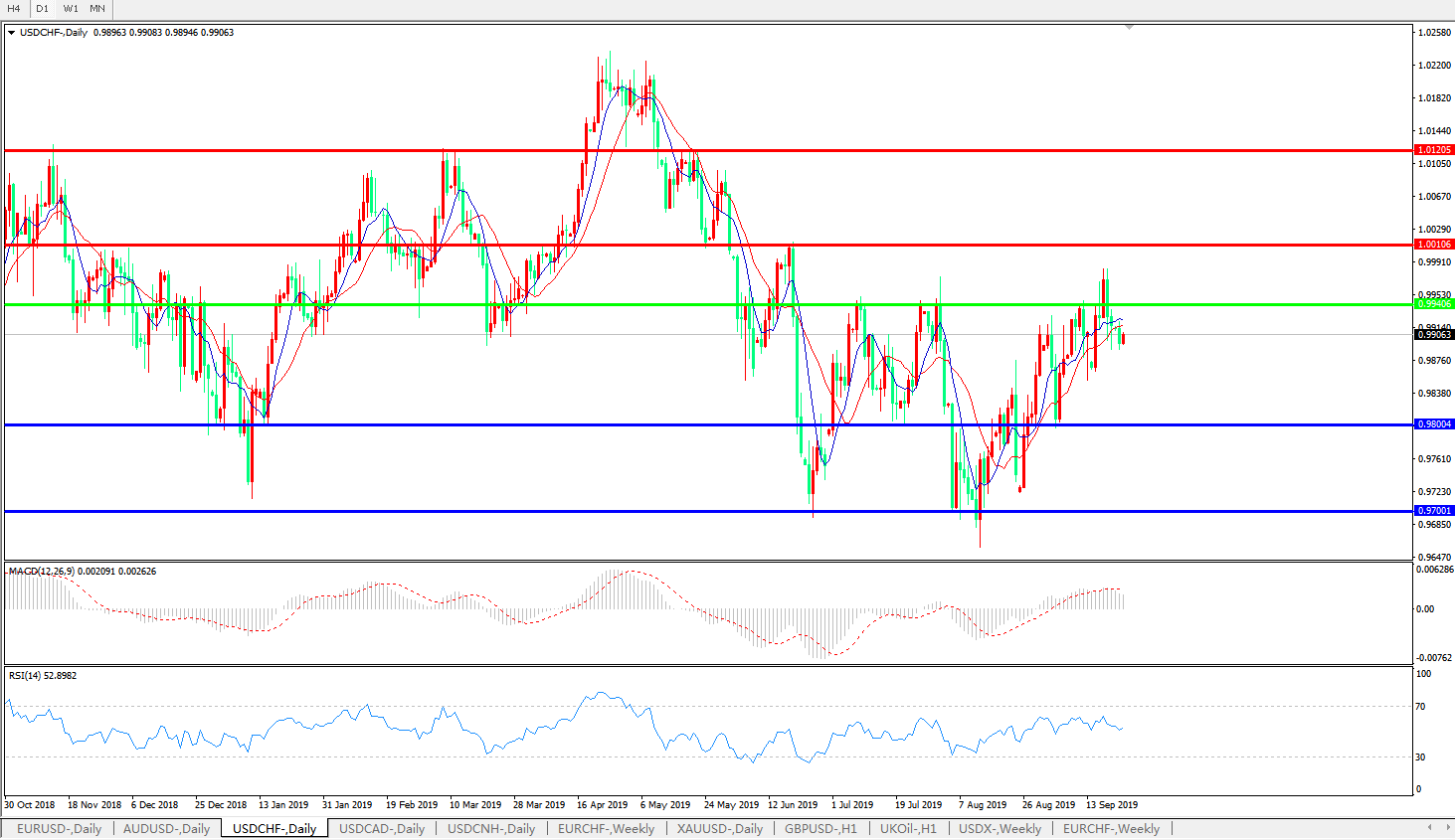美元瑞郎USDCHF   日线图:
