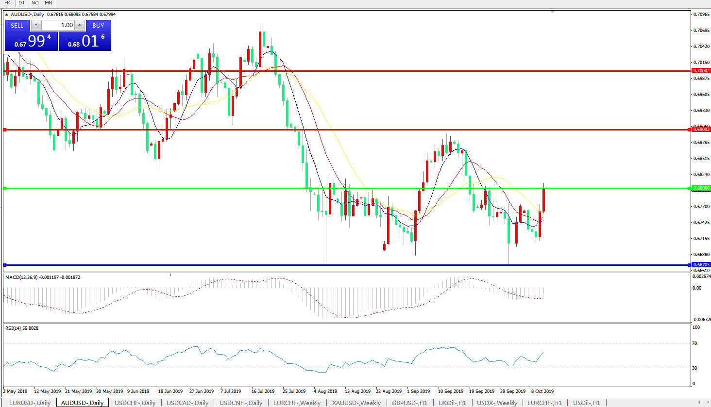 交易策略:0.6800上方看涨,目标0.6900、0.7000