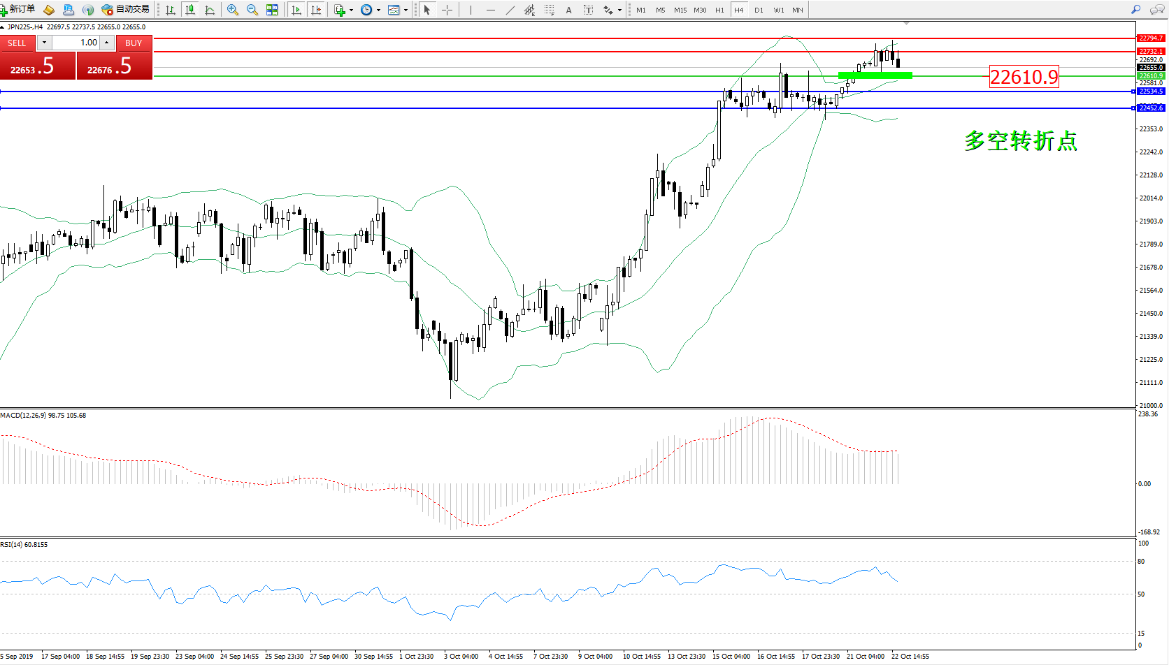 日经225指数1021日(周一)收盘上涨57.82点,涨幅0.26%,报22550.50点。日本央行总裁黑田东彦表示,日本央行若需要放宽政策,就“一定”会调降中短期利率,表明进一步调低负利率将是其对抗海外风险升高的主要工具。“如果我们需要进一步放宽货币政策,我们就一定会调低中短期利率。但我们不想降低超长期利率,”他在周六参加国际货币基金组织(IMF)和世界银行会议后表示。这也是迄今为止黑田东彦所发出最强烈的信号,表明日本央行如果要放松政策,最可能采取的措施将是推动短期利率目标在负值区间内进一步下降。