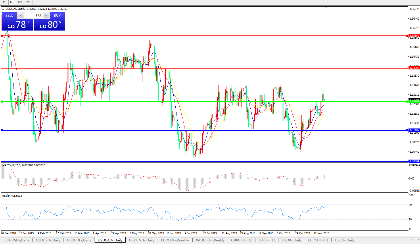 美元指数0.08%至97.98, 最近几周,投资者对达成协议的可能性越来越乐观,但最近几天,双方的贸易言论都趋于强硬,令投资者感到不安。OANDA驻多伦多的资深外汇分析师Alfonso Esparza表示,这些消息的影响相互抵消,实际上对市场不利,目前,美元非常依赖贸易消息。美元兑加元下跌0.14%至1.3285一线,盘中低点1.3270;该货币对维持在200日移动均线1.3277上方,并保持在周三的交易区间内。加拿大央行行长Poloz表示货币政策状况大体合适,并且具有相当刺激性,这降低了该国进行预防性降息的可能性。加元也追随油价走高;WTI原油上涨超过2%,创九周新高。一位加拿大策略师表示,Poloz的言论引发了对加元的空头回补;加拿大央行12月份降息的概率从周三的23%降至约9%。