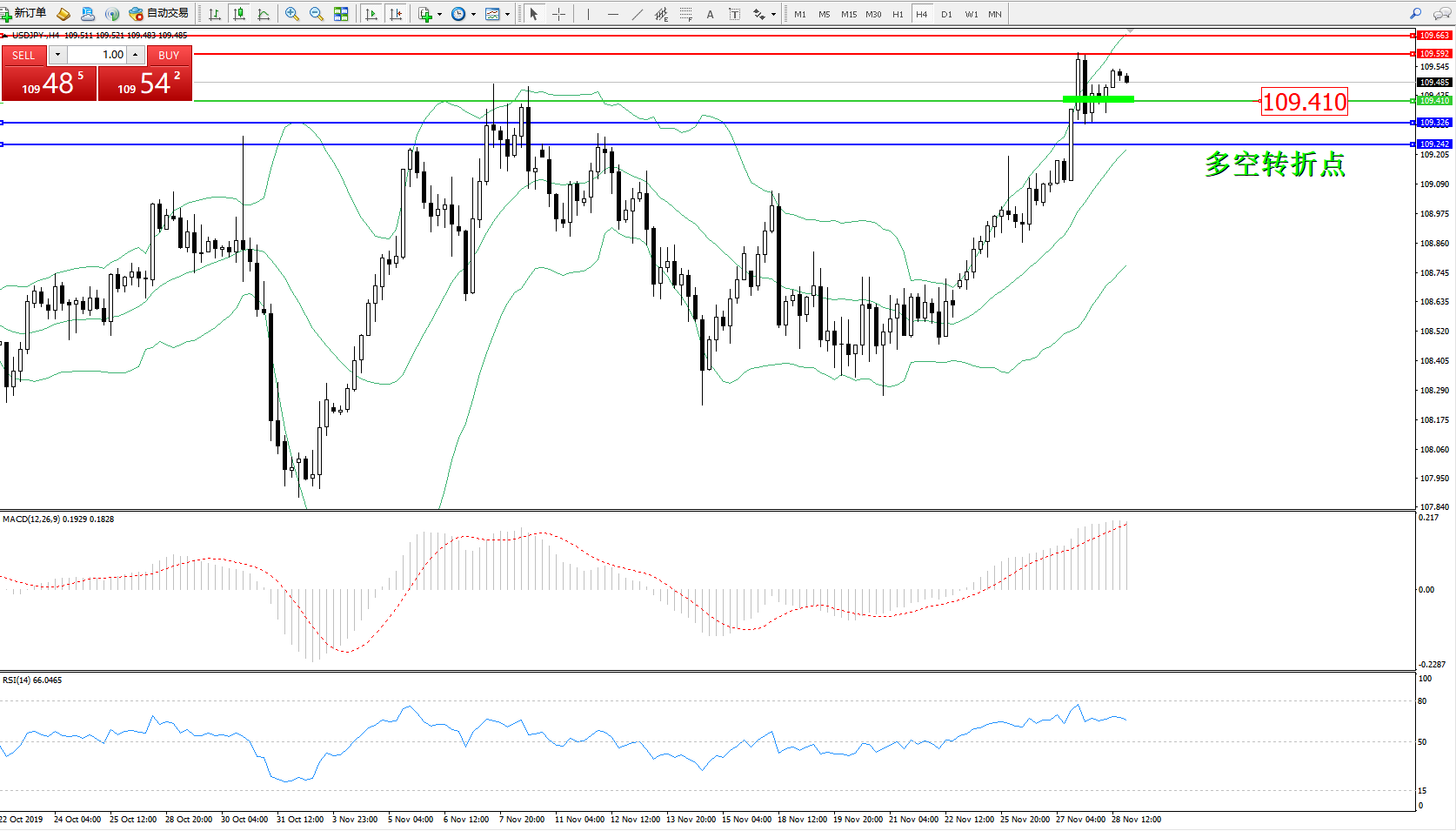 美元兑日元跌0.03%109.51;美国感恩节前的市场乐观情绪助推股市再创新高,也进一步打压避险资产买需。因在此后两周美联储官员都不会有进一步讲话的背景下,美联储年内最后一次会议按兵不动已成定局,这确保了美元指数继续坚挺;考虑到日内美国进入假期交投将清淡,基本面更多突发事件可能对汇价产生超比例的影响,因为投资者尤须对此保持高度警惕。