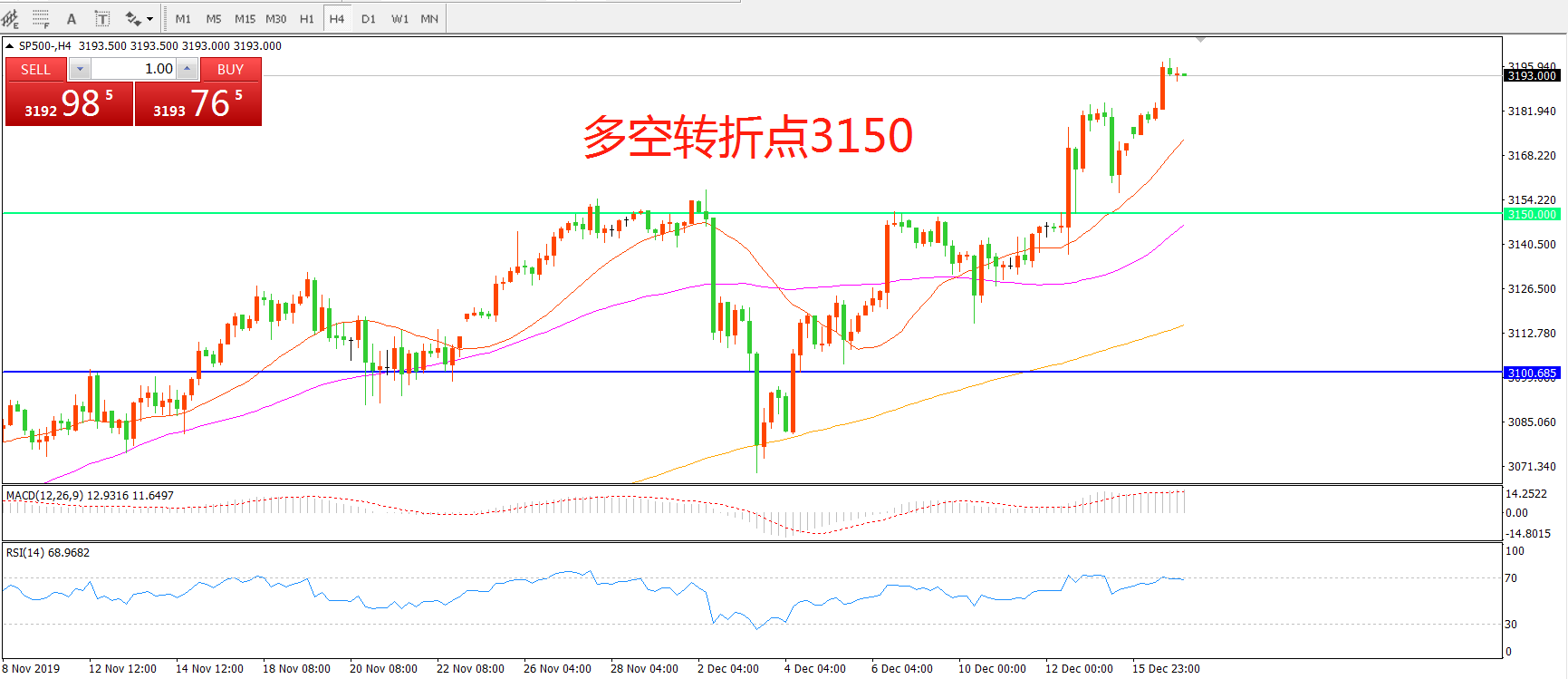 多空转折点:3150.00