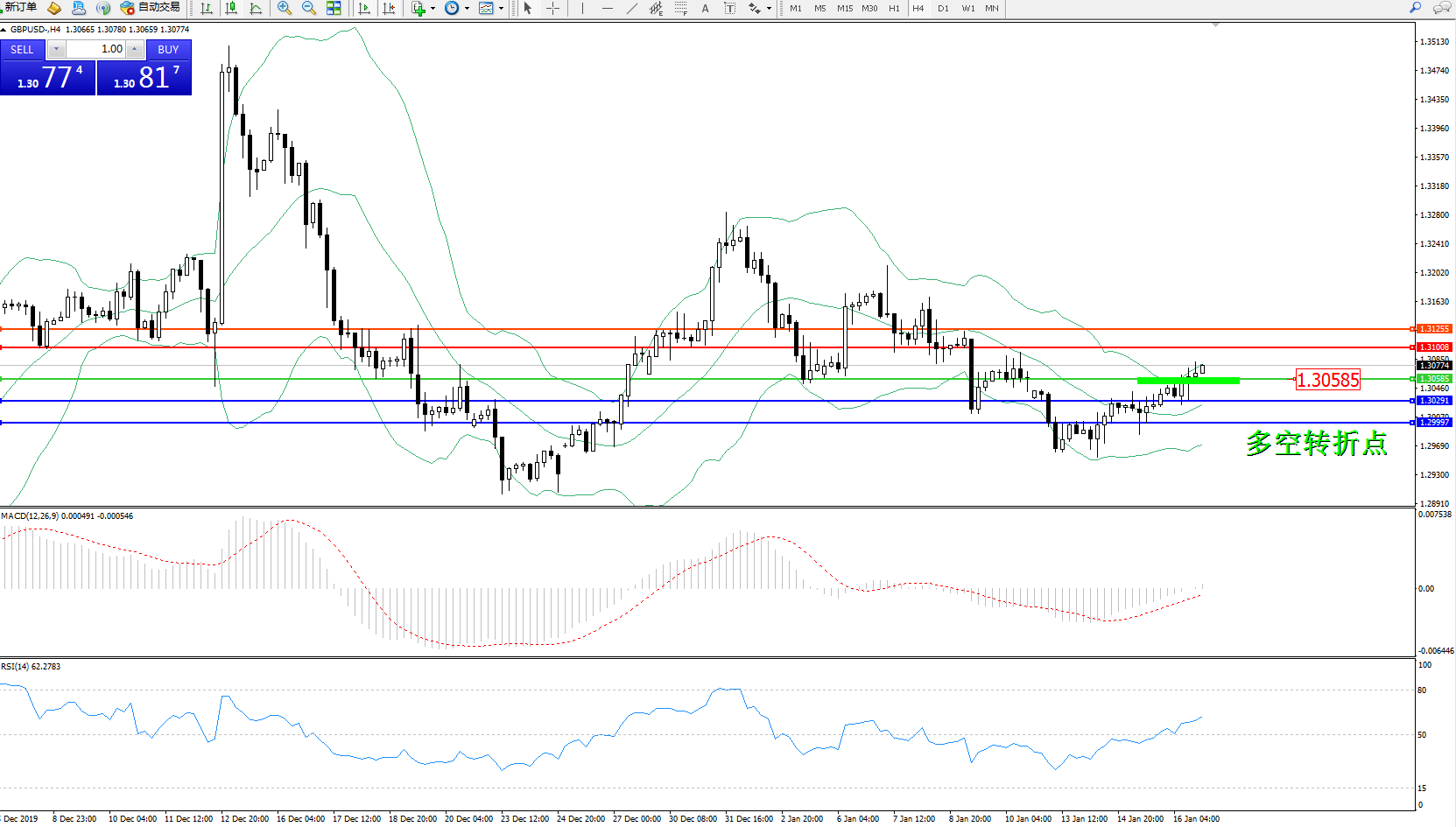 交易策略:1.30585上方看涨,目标1.310081.31255