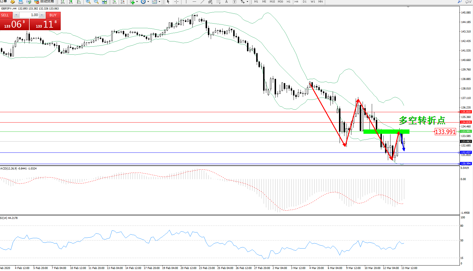 交易策略:133.991下方看跌,目标132.037130.994