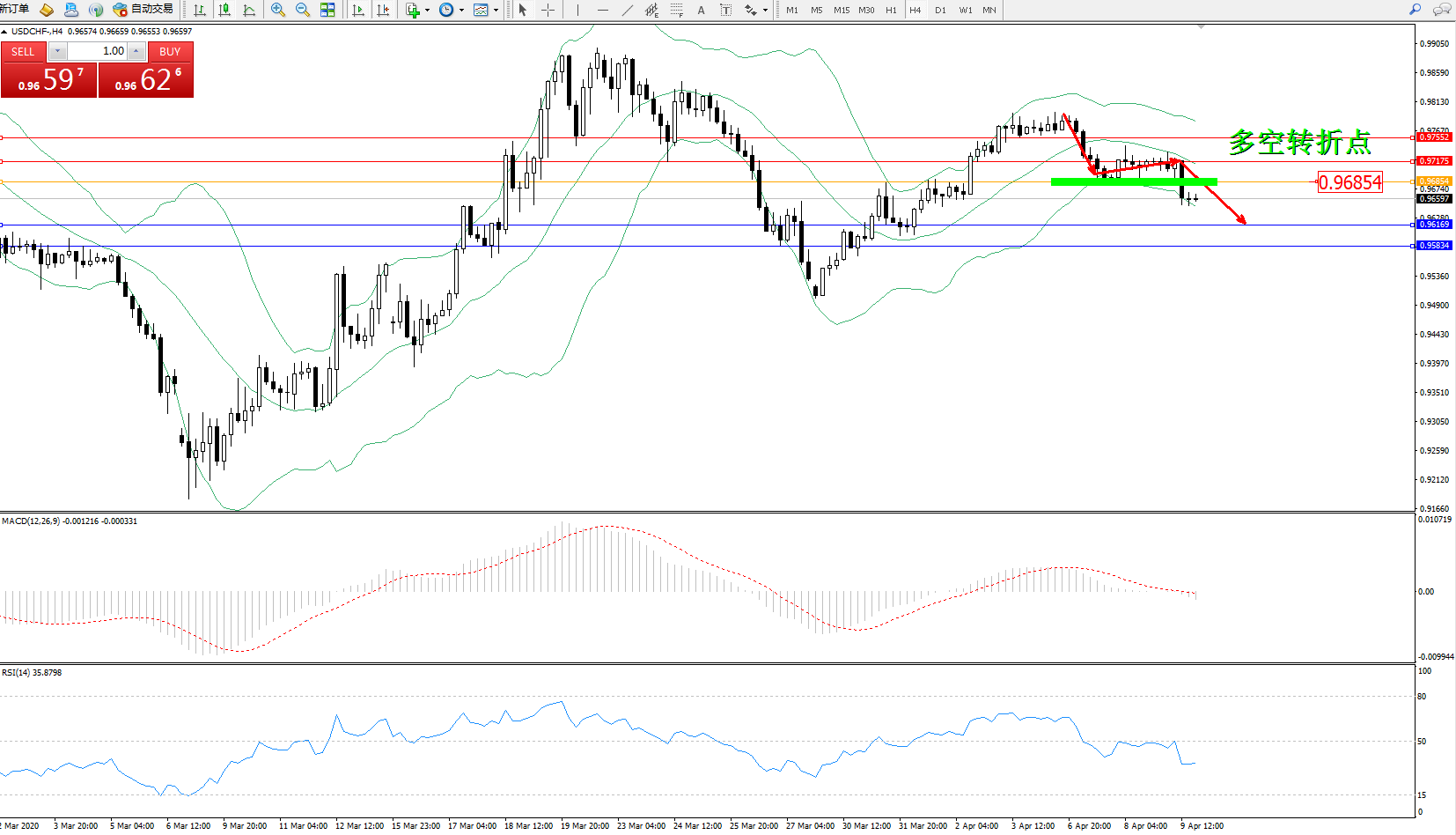 交易策略:0.96854下方看跌,目标0.96169、0.95834