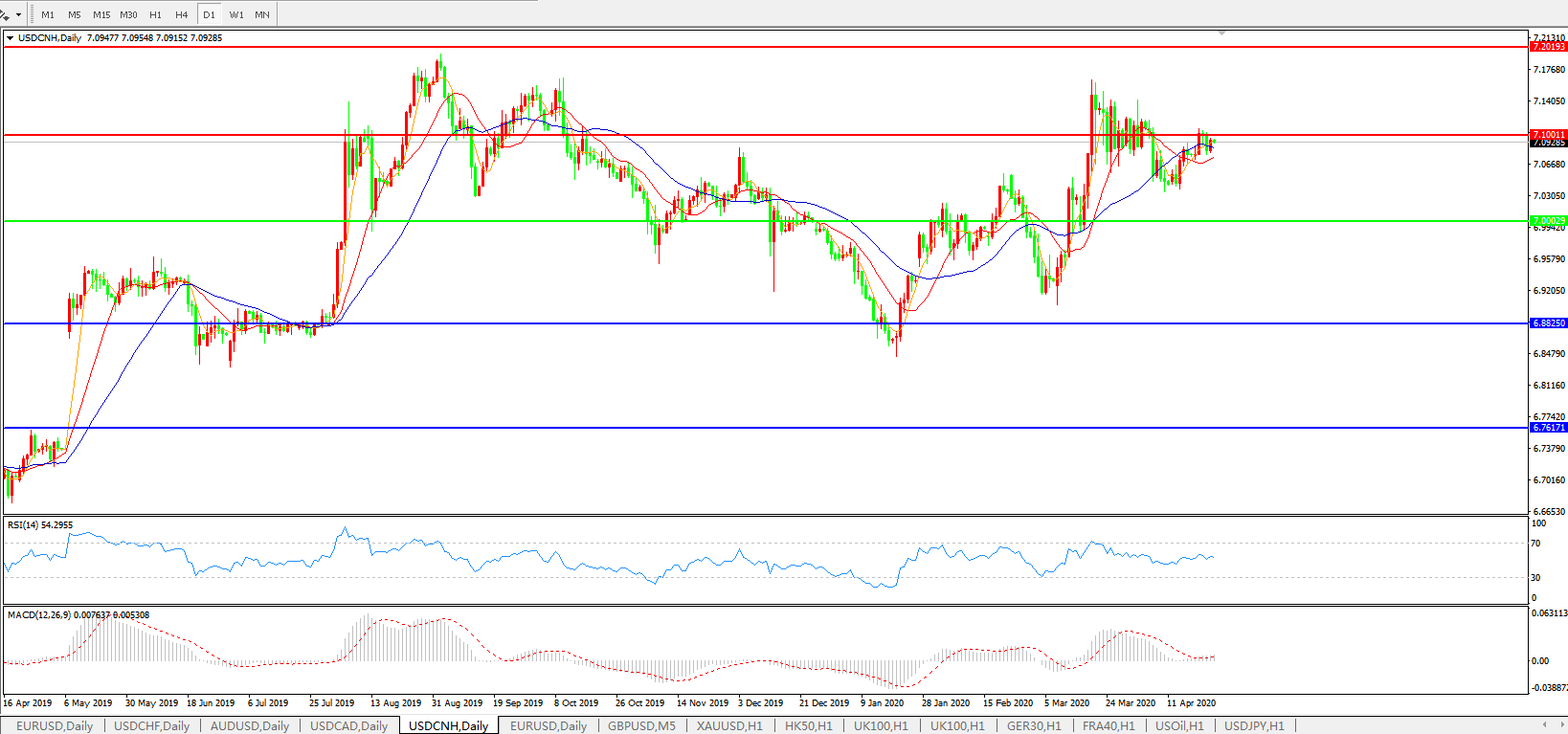 美元兑人民币USDCNH    日线图: