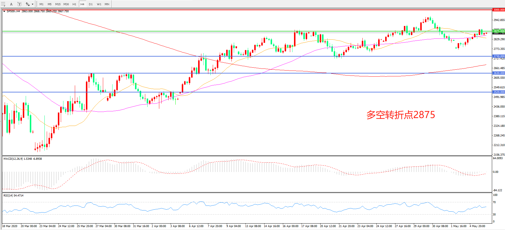标普500 SP500 4小时图