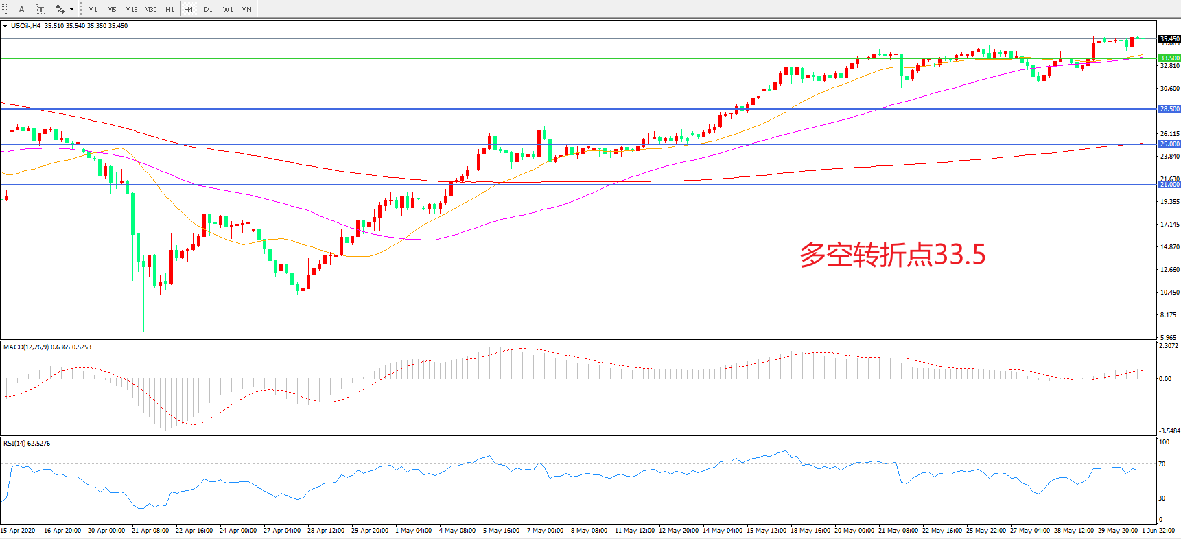 5月美国原油和布伦特原油格录得多年来最强劲的月度涨幅,随着更多国家摆脱新冠病毒疫情封锁,预计原油需求将复苏。OPEC成员国通常在6月的第一周决定7月份向客户供应石油的计划,因此提前召开会议可以让其有时间改变策略,在下次会议上,OPEC+将决定是维持目前的减产量还是按原计划稍微放松,务必重点关注。